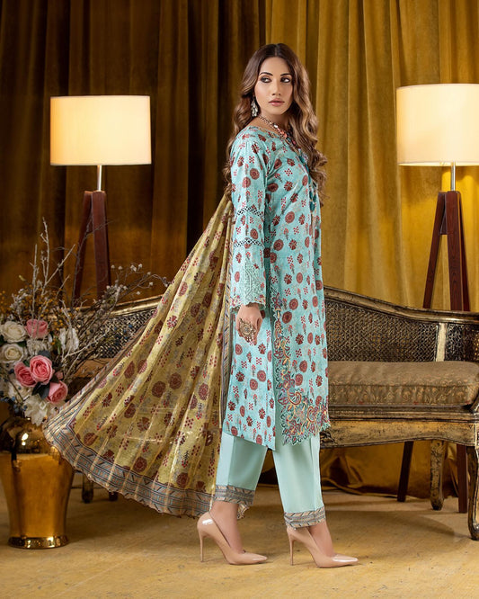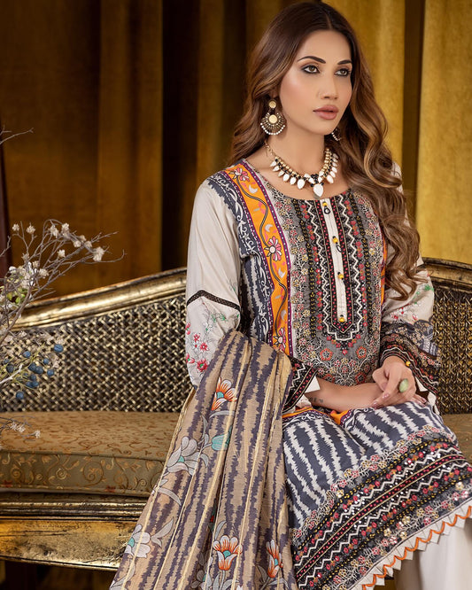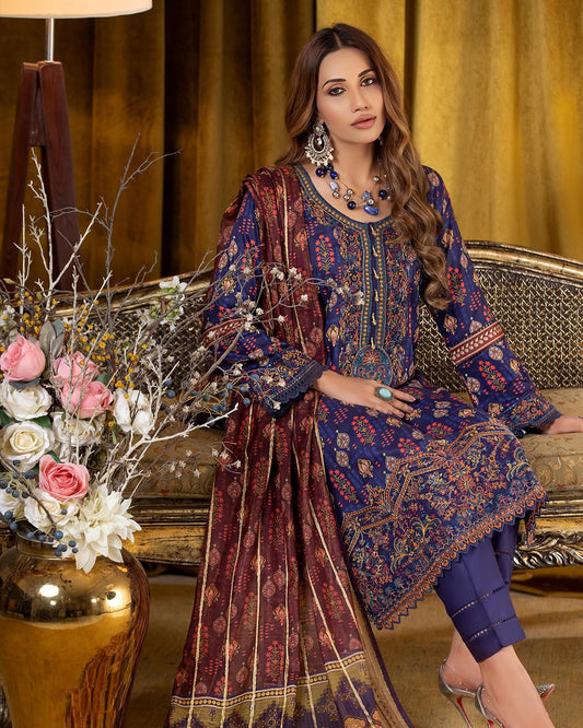 Munira Slub Printed Linen with Embroidery MSPL 04