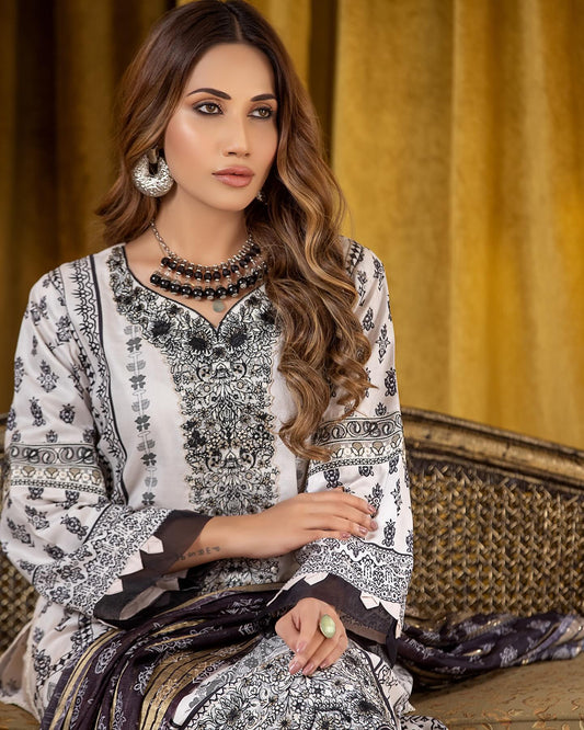 Munira Slub Printed Linen with Embroidery MSPL 06