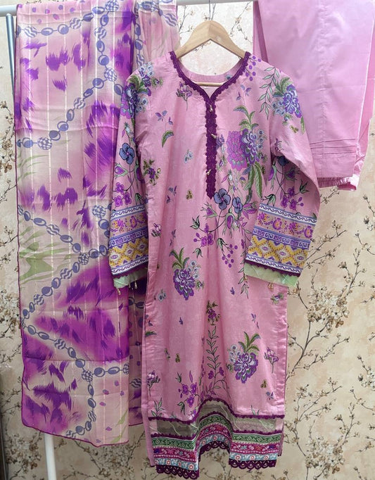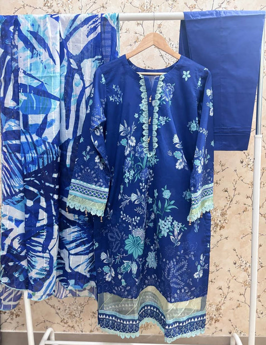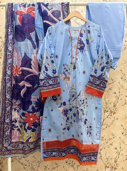 Munira Slub Printed Linen with Embroidery MSPL 03